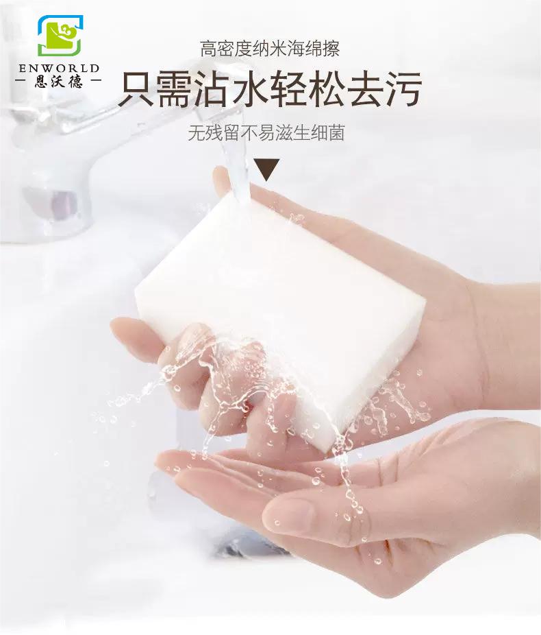 用抹布來清潔物品時,需要大量的洗滌劑來輔助抹布去污,抹布擦拭完之后,還需要用清水來沖洗,并且抹布上也會粘連許多的污垢,清洗時還需要洗滌劑才能清洗干凈抹布,很多時候還很難把抹布清洗干凈,而且濕潤的抹布放在室內(nèi)非常的不容易晾干,時間久了會滋生許多的細(xì)菌。使用納米海綿清潔物品可謂是信手拈來,納米海綿是采用純物理去污的機(jī)理,依靠其內(nèi)部的毛細(xì)管開孔結(jié)構(gòu)。在濕潤后呢可自動吸附物體表面的污漬。它的去污能力強(qiáng),一般清潔劑無法清潔的污垢都可以輕松去除;適用于凹凸不平面,任何深藏的污垢,只需清水,一擦即凈;使用起來也非常方便,可按需求切割成大小不一的形狀;還具有99.99%的 自然抗菌效果,不用擔(dān)心會有細(xì)菌的滋生。清潔完之后把納米海綿放在清水下沖洗,不必擰搓,污垢可自行溶出,晾干后可以反復(fù)使用。使用納米海綿來清潔不僅省時省力,還健康、環(huán)保、無污染。